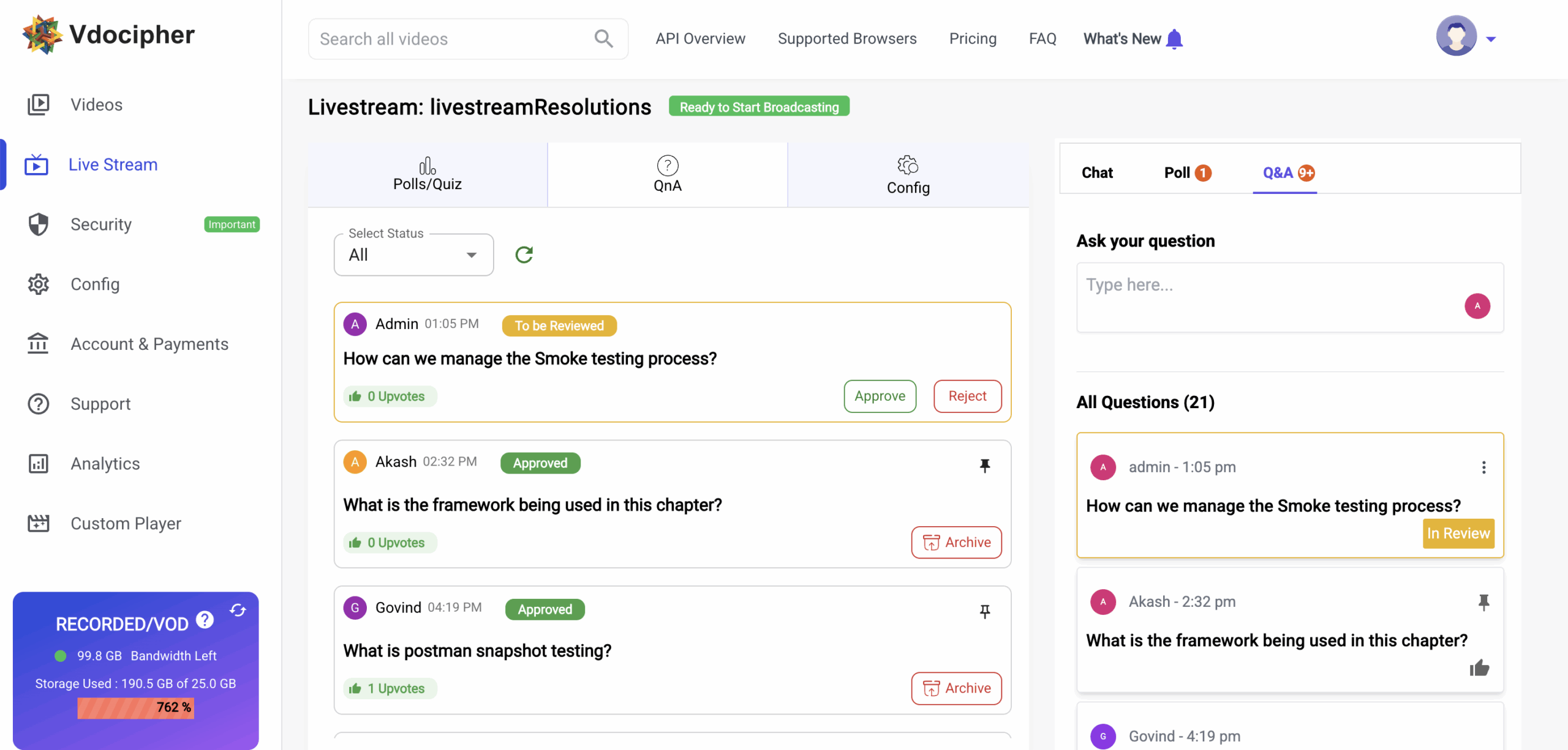 We have launched Q&A for live streams, allowing verified viewers to ask questions during a broadcast. Hosts and moderators can review, approve, respond, and archive questions seamlessly without leaving the dashboard.
