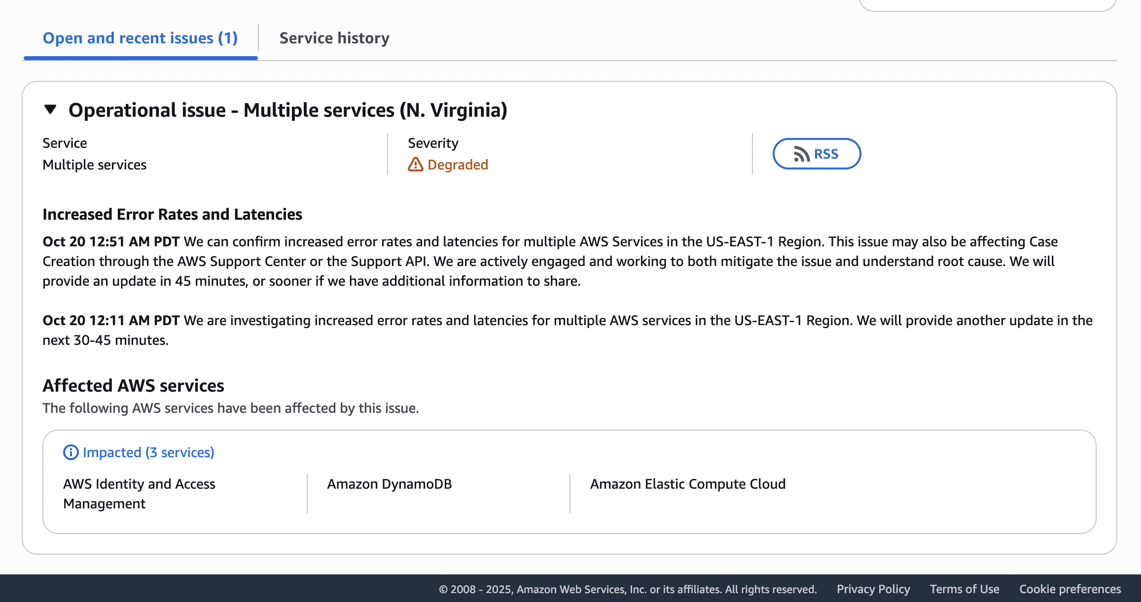 Amazon AWS Servers which power over 40% of world websites and also vdocipher secure videos are currently down. The status of issue can be seen on their status page here – https://health.aws.amazon.com/health/status , Screenshot attached.